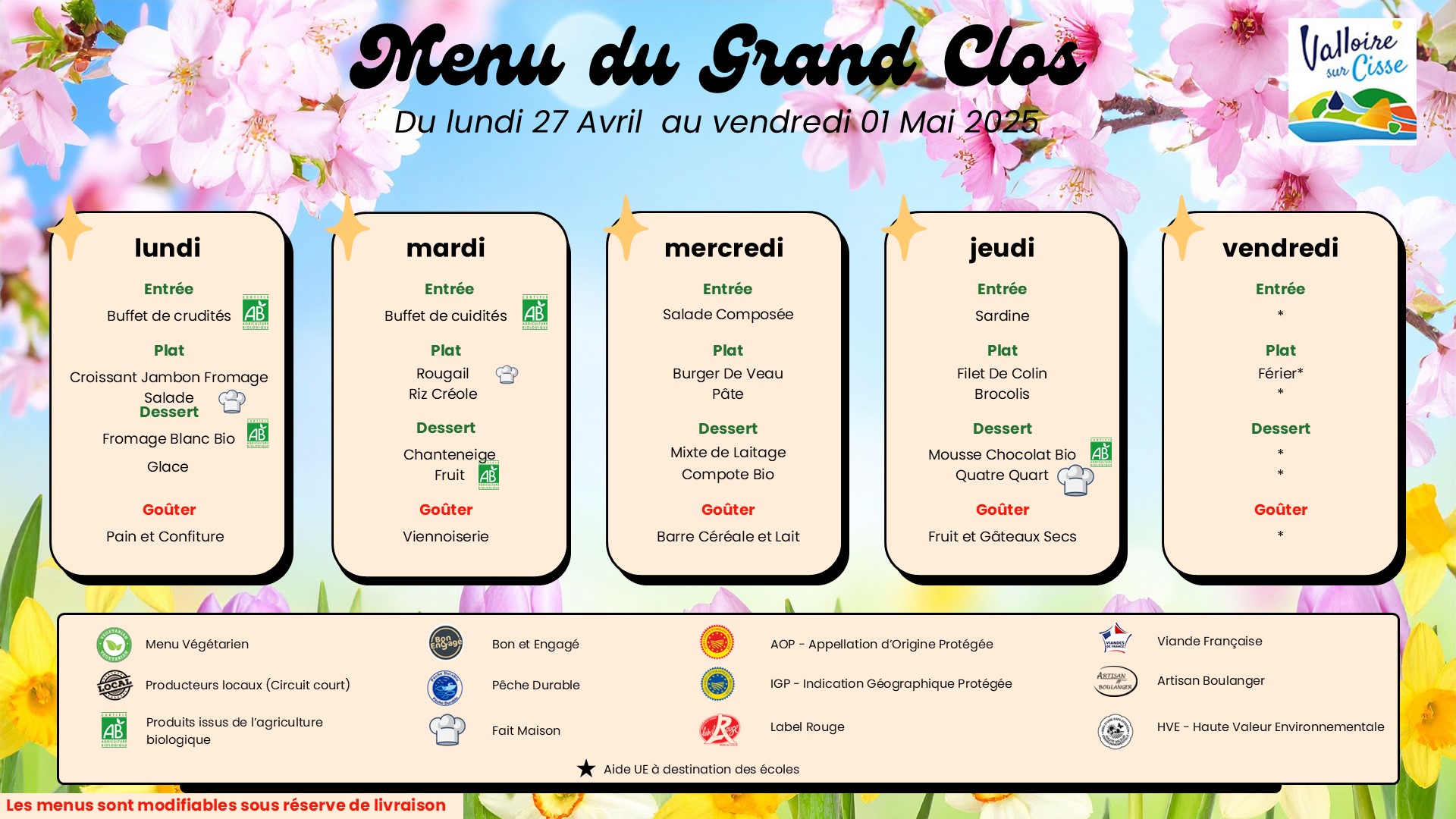 Les menus proposés sont travaillés avec une diététicienne et validés par la Commune de Valloire-sur-Cisse